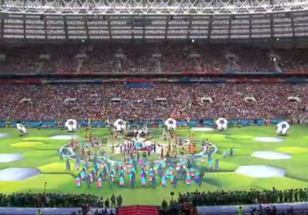 انطلق حفل افتتاح مونديال روسيا 2018 باستعراضات قام بها راقصون وراقصات مرتدين ألوان الدول المشاركة في كأس العالم.