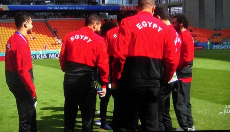 ظهر لاعبو المنتخب المصري على أرض ملعب أولى لقاءاتهم في المونديال، بعد غياب طال 28 عامًا، ليقوموا بعمليات الإحماء وسط مساندة كبيرة من الجماهير.