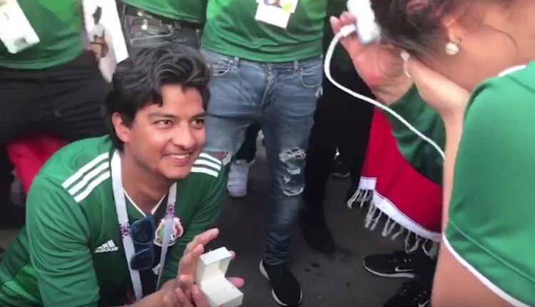 في خطوة جريئة تقدم مشجع مكسيكي للزواج من حبيبته عقب فوز منتخب بلاده على ألمانيا حاملة لقب المونديال  في أكبر مفاجأة في البطولة حتى الآن.