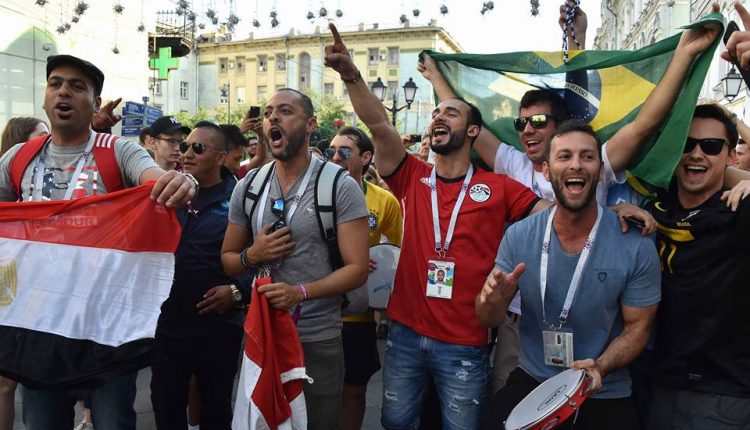 وظلت الجماهير تردد الأغاني للمطربين المصريين عبدالحليم حافظ وأم كلثوم، والهتاف لمحمد صلاح ومنتخب مصر، حيث تفاعلت الجماهير الروسية معهم، ورددت معهم هتافهم.