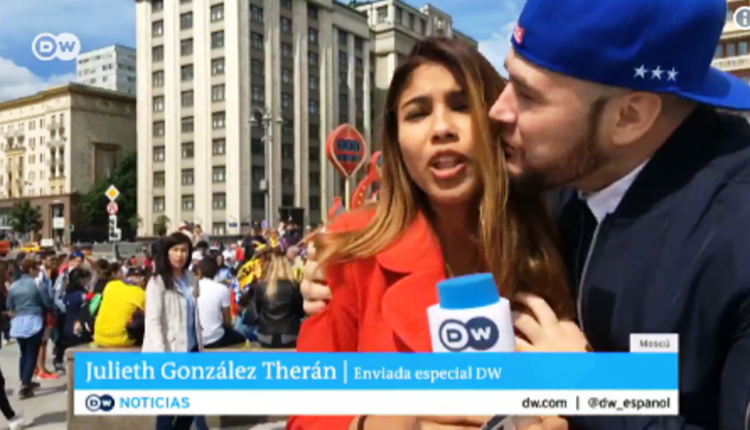 قام مشجع بتقبيل مراسلة قناة دويتشه فيله «DW» على الهواء أثناء تغطيتها لبطولة كأس العالم 2018 في روسيا.