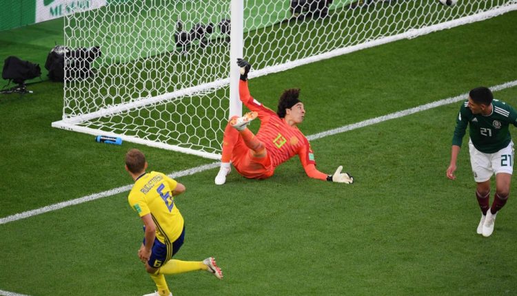 - السويد تتقدم عن طريق أوجوستينسون بتسديدة على يسار حارس المرمى المكسيكي من داخل منطقة الجزاء