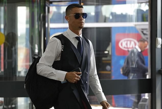 وشوهد نجم فريق ريال مدريد، «رونالدو»، الذي كان يرتدي نظارة شمسية يشق طريقه إلى المطار حاملًا حقائبه اليدوية بعد رحلة الحافلة.