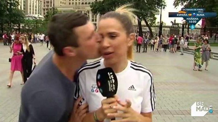 وكانت المراسلة تقوم بالتغطية الإعلامية قبل انطلاق مباراة إسبانيا وروسيا، التي شهدت فوز الأخيرة، حين فاجئها مشجع بتقبليها على خدها قبل أن يركض هاربًا وعلى وجهه ابتسامة، فيما وضح عليها الغضب والقرف والتفتت إليه صارخة: «حقًا؟».