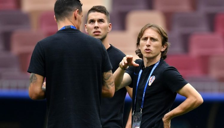 خرج لاعبو المنتخب الكرواتي إلى أرض ملعب لوجنيكي قبل انطلاق مباراتهم عليه أمام المنتخب الفرنسي في نهائي مونديال 2018.