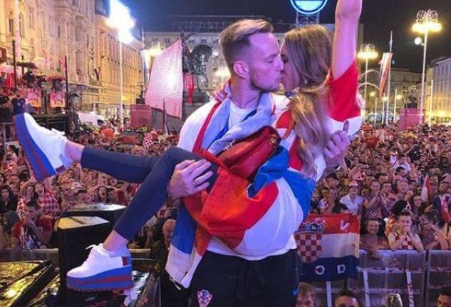 أمام عشرات الآلاف من الكرواتيين حمل نجم منتخبهم الوطني إيفان راكيتيتش زوجته راكيل ماوري ليهدها قُبلة عاطفية تعبيرًا عن امتنانه لها وحبه بعد فوزه مع منتخب بلاده بفضية المونديال.