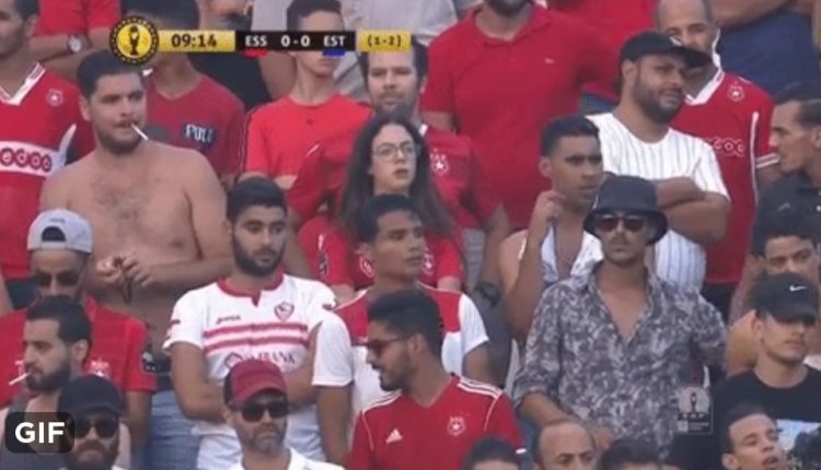 سخر الحساب الرسمي لنادي الترجي التونسي من صورة لمشجع يرتدي قميص نادي الزمالك يجلس مع جماهير النجم الساحلي التونسي، في المباراة التي جمعت الفريقين في إياب دور الربع نهائي لبطولة دوري أبطال أفريقيا، والتي انتهت بفوز الترجي بهدف وتأهله للدور نصف النهائي.