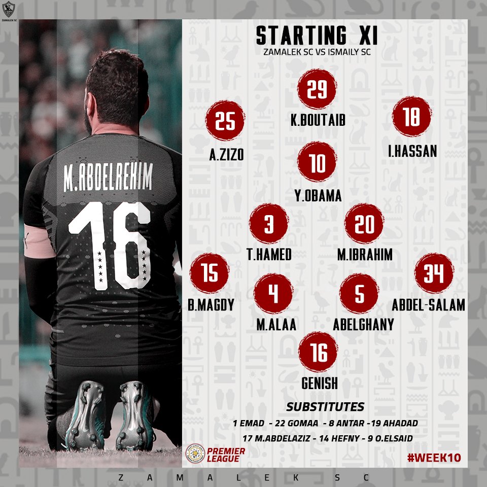 ويتواجد على دكة البدلاء: عماد السيد- أيمن حفني – حميد أحداد – عمر السعيد – محمود عبدالعزيز – محمد عنتر – عبدالله جمعة.