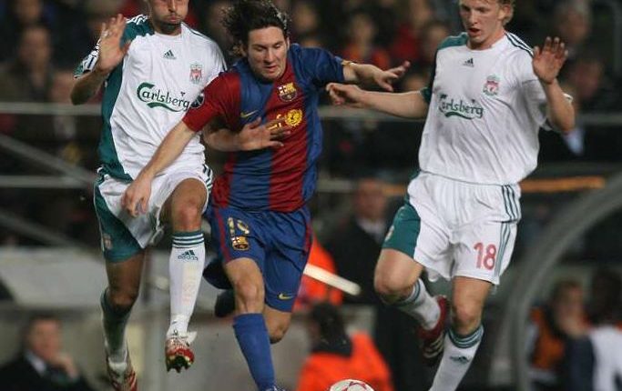 وقبل قرابة 12 عامًا، عاد الفريقان للمواجهة في موسم 2006-2007، حين جمعهما دور الـ 16 من دوري الأبطال، وكأن ذهاب الأدوار الإقصائية التي تجمعهما دائمًا يجب أن يكون على الكامب نو، استضاف الملعب التاريخي المباراة الأولى. وشهدت المباراة مشاركة الأرجنتيني ليونيل ميسي لأول مرة أمام الريدز في مركز الجناح الأيمن، فيما دعمه من الجناح الأيسر الأسطورة البرازيلية الساحر رونالدينيو، فيما ضم الفريق أسماء أخرى كبيرة كتشافي وديكو وسافيولا وبويول وغيرهم، لكن كل هذا لم يكن كافيًا لهزيمة فريق اعتاد احتلال قلعتهم مع كل زيارة، رغم ندرة الأسماء الكبيرة في ليفربول آنذاك، ليسقط البلوجرانا بهدفين وسط جماهيره أحرزهما كريج بيلامي وجون آرن رييس، لكن الجانب المشرق الوحيد في المباراة كانت تسجيل برشلونة لهدف لأول مرة في شباك ليفربول على الكامب نو، وأحرزه البرتغالي ديكو، ليبقى حتى الآن الهدف الوحيد الذي سجله النادي الكتلوني أمام ليفربول على أرضه.