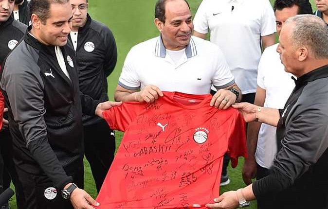 التقى الرئيس عبدالفتاح السيسي، صباح اليوم، بأعضاء المنتخب الوطني المشارك في بطولة كأس الأمم الأفريقية المقبلة لكرة القدم التي ستستضيفها مصر انطلاقاً من شهر يونيو الجاري، حيث أعرب خلال اللقاء عن خالص أمنياته بالتوفيق والنجاح للمنتخب في البطولة، مؤكداً على ثقته الكاملة في إدراك أعضاء جهاز المنتخب الوطني واللاعبين لحجم المسئولية الملقاة على عاتقهم، ومطالباً جميع أفراد المنتخب ببذل أقصى الجهد لإسعاد الشعب المصري الذي ينظر لهم بكل الاحترام والتقدير.
