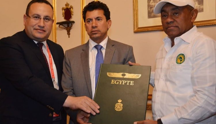 أشرف صبحي يهدي رئيس «كاف» كتاب يروي تاريخ مصر