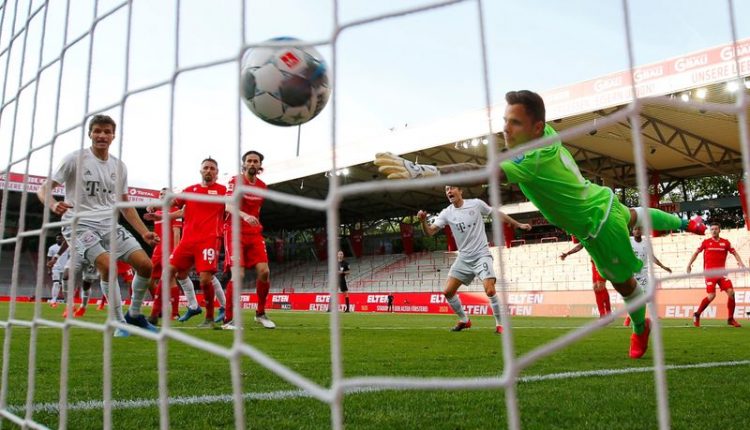 هز بايرن ميونيخ حامل اللقب الشباك في نهاية كل شوط ليهزم أونيون برلين 2-صفر يوم الأحد في أول مباراة يخوضها في دوري الدرجة الأولى الألماني لكرة القدم منذ ما يزيد على شهرين بسبب جائحة كوفيد-19، ويحافظ على تفوقه بفارق أربع نقاط على قمة الترتيب.