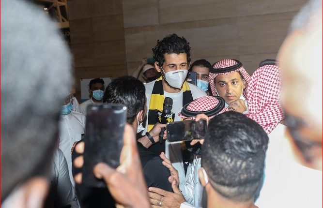 ونشر الحساب الرسمي لنادي الاتحاد السعودي على موقع «تويتر»، صورًا من استقبال اللاعب في المطار، وكذلك فيديو للاعب قال فيه: لسة واصل جدة دلوقتي وشكرا على الاستقبال الرائع وإن شاء الله أقدم أفضل ما عندي علشان نسعد جمهور الاتحاد«.