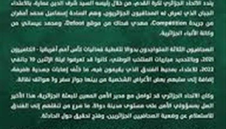 الاتحاد الجزائري يدين الاعتداء على الصحفيين بالكاميرون