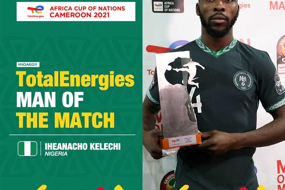 حصد كيليتشي إيهياناتشو نجم ليستر سيتي الإنجليزي ومنتخب نيجيريا على جائزة رجل مباراة نيجيريا مصر، مساء اليوم الثلاثاء في افتتاح دور المجموعات.