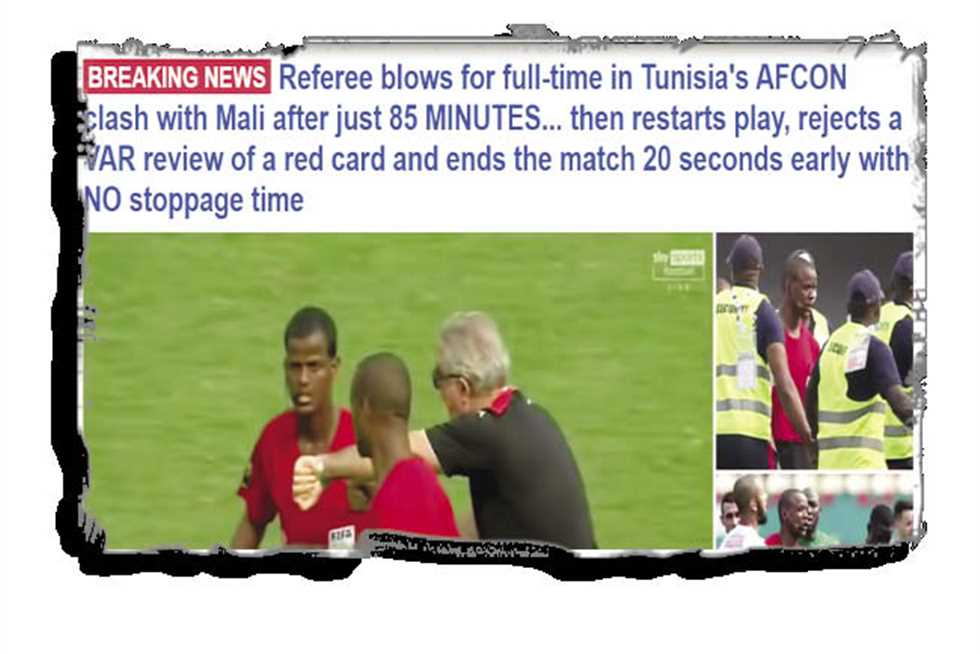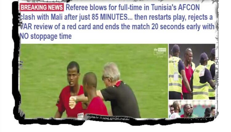 وشهد اليوم الرابع من كأس أمم إفريقيا 2021 مباراة جمعت تونس ضد مالى، ضمن منافسات الجولة الأولى بالمجموعة السادسة، لكنها شهدت واقعة مثيرة للجدل بطلها الحكم الزامبى جانى سيكازوى.