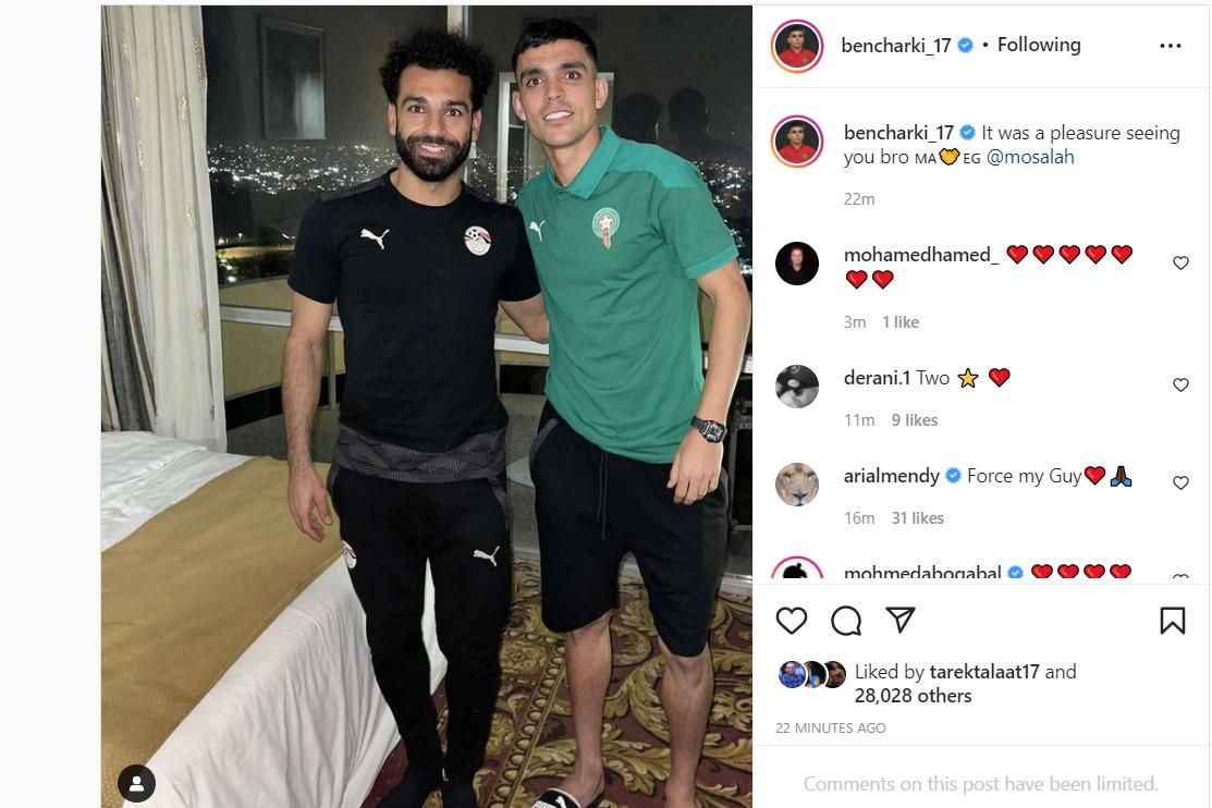 ونشر بن شرقي صورة تجمعه بمحمد صلاح لاعب منتخب مصر والمحترف بصفوف ليفربول الإنجليزي وعلق بن شرقي تعليقا على الصورة :«كان من دواعي سروري رؤيتك يا أخي».