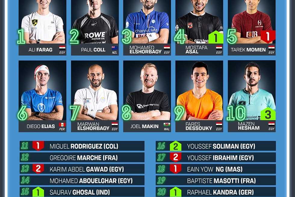 أعلنت رابطة اللاعبين المحترفين للاسكواش التصنيف الجديد للاعبين للشهر الجديد عبر الموقع الرسمي للرابطة PSA.