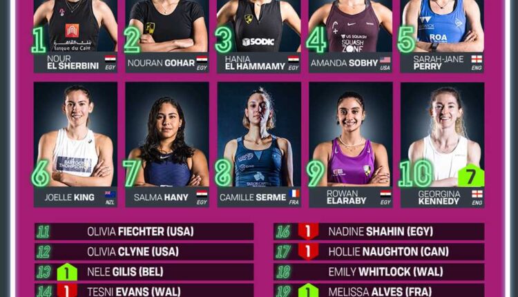 أعلنت رابطة اللاعبين المحترفين للاسكواش التصنيف الجديد للاعبات لشهر فبراير 2022 عبر الموقع الرسمي للرابطة PSA.