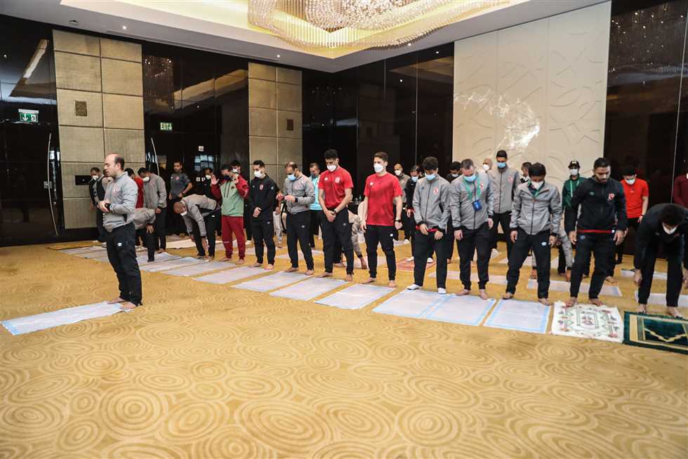 أدى لاعبو الفريق الأول لكرة القدم بالنادي وأعضاء البعثة في الإمارات صلاة الجمعة بفندق الإقامة بأبوظبي، وألقى خطبة الجمعة الدكتور أحمد أبوعبلة، طبيب الفريق.