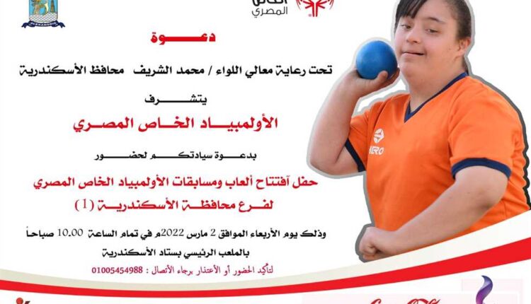 يفتتح المهندس هانى محمود، رئيس الأوليمبياد المصرى الخاص، يرافقه اللواء محمد الشريف، محافظ الإسكندرية، حفل افتتاح ألعاب ومسابقات الأوليمبياد الخاص المصرى، والذى يستضيفه استاد الإسكندرية الدولى، غدًا الأربعاء.