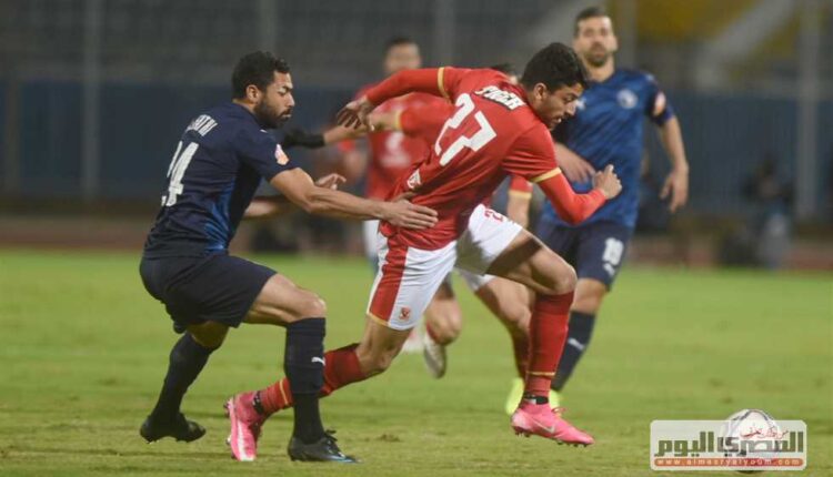 تعرض ياسر إبراهيم مدافع النادي الأهلي خلال مباراة بيراميدز المقامة حاليا على أرض ملعب استاد السلام للضرب بدون كرة من رمضان صحبي، لاعب بيراميدز.