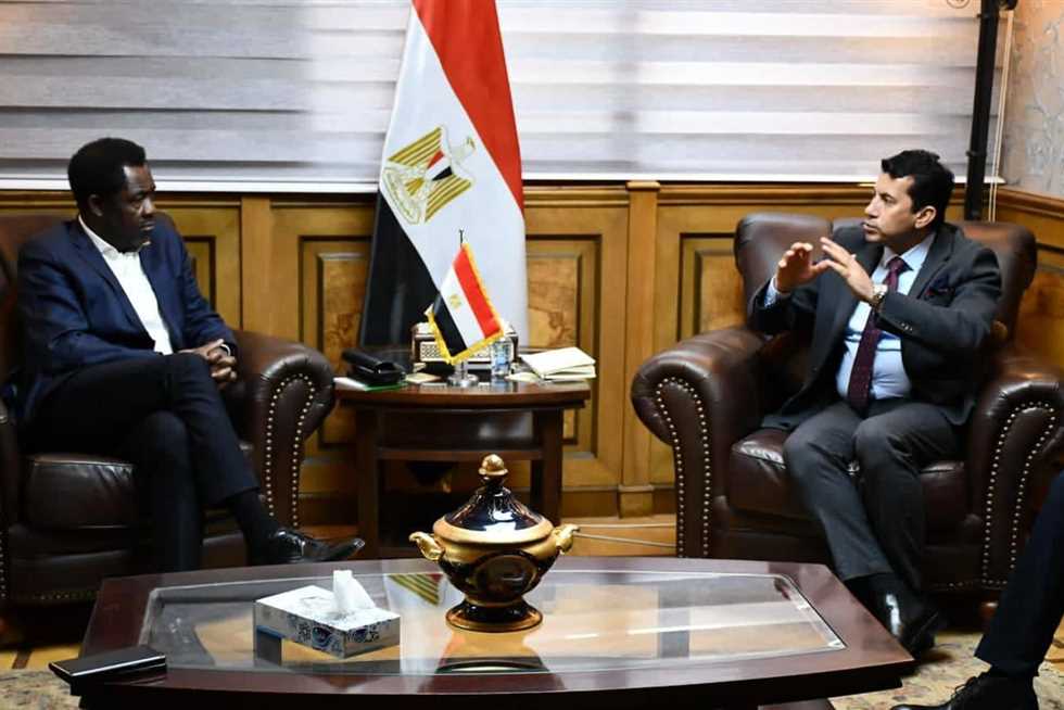وزير الرياضة يلتقي الامين العام للاتحاد الإفريقي لكرة القدم بحضور جمال علام