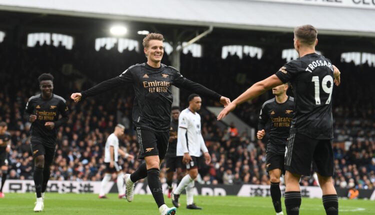 61″: هجمة خطيرة من جانب أرسنال تنتهي بتصويبة رائعة من مارتنلي ولكن تصطدم بقدم مدافع فولهام وتمر إلى الخارج