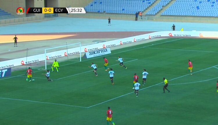 77″: ضغط مكثف من منتخب مصر على غينيا في محاول لإدراك الهدف الثاني